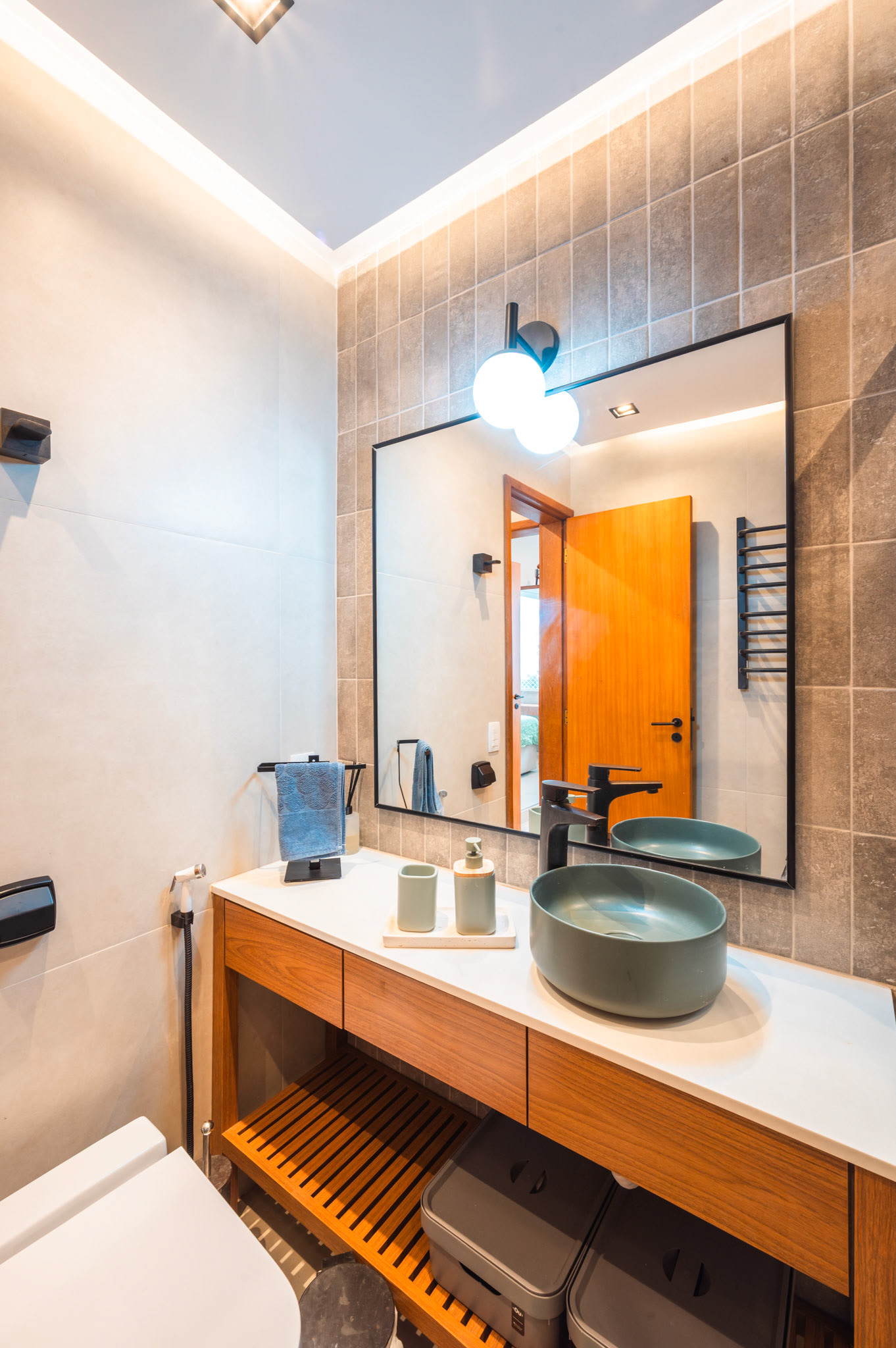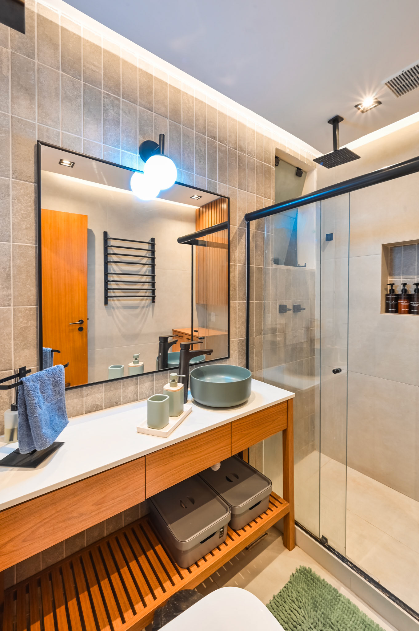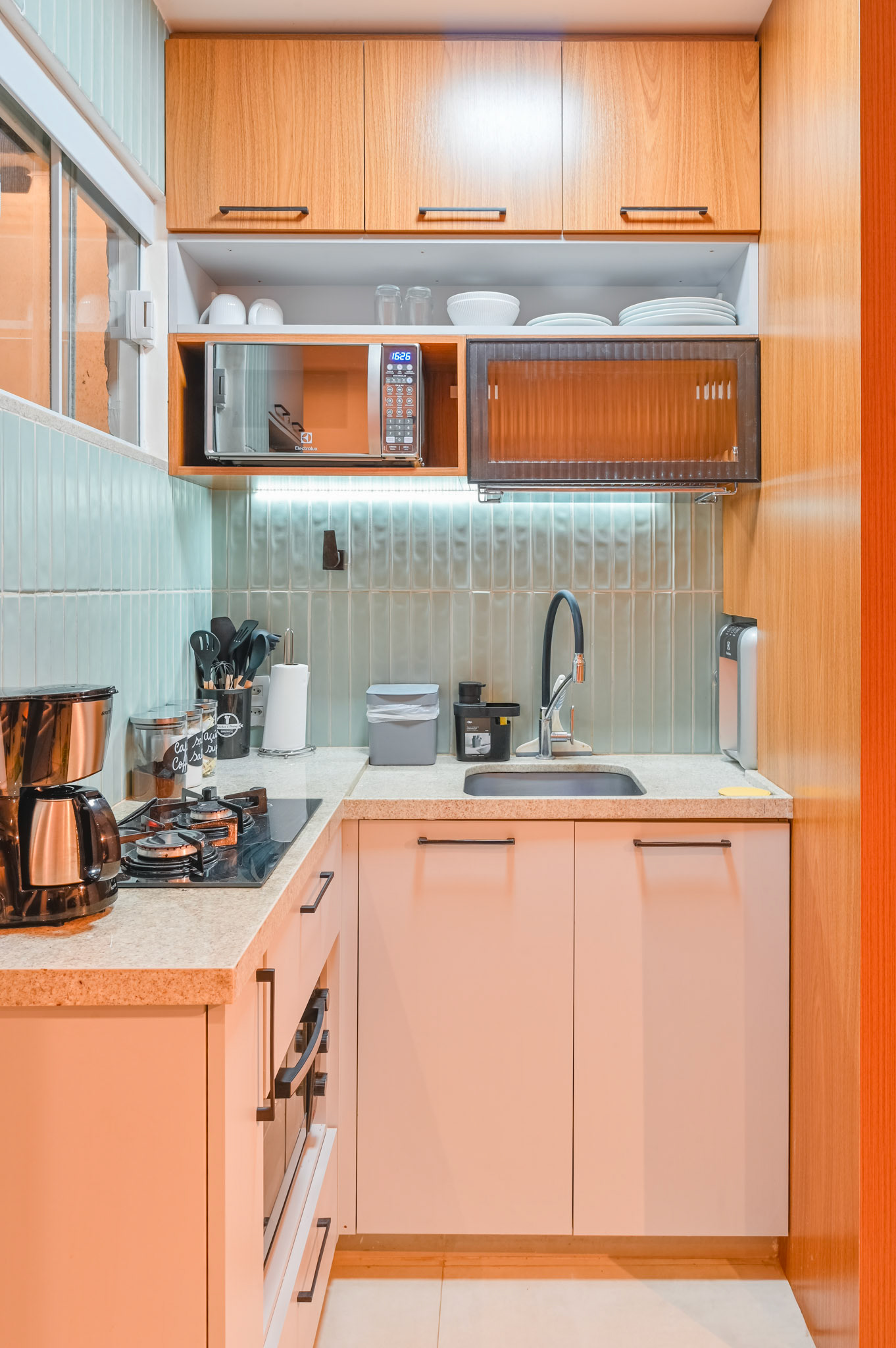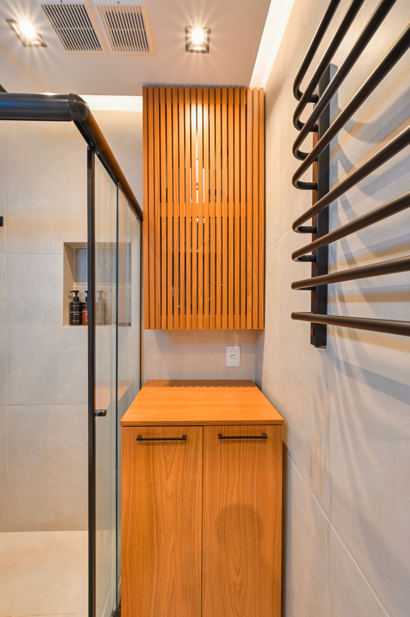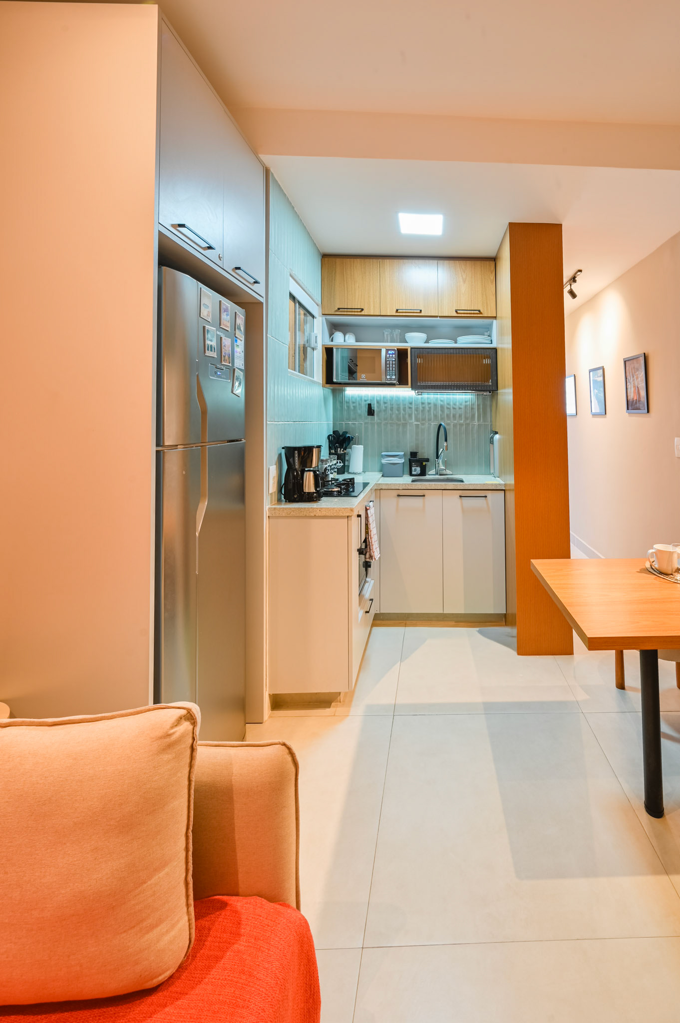 Ensaio fotográfico de um apartamento compacto projetado para locação por temporada no Rio de Janeiro. Apesar da metragem reduzida, o espaço foi pensado para oferecer conforto, funcionalidade e uma experiência acolhedora ao hóspede. O projeto explora a combinação de madeira, tons quentes e frios e iluminação com spots direcionados, enquanto a marcenaria sob medida otimiza cada área do apartamento sem comprometer a estética. A fotografia buscou valorizar a luminosidade natural, a organização do layout e os detalhes que reforçam a identidade carioca do ambiente.